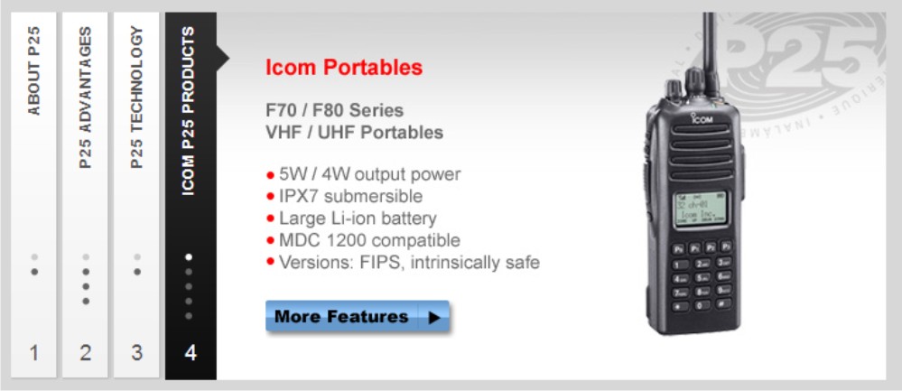 A Icom oferece no Brasil através da Radiohaus, uma completa linha de rádios portáteis no Protocolo P25. São rádios muito robustos e com a melhor relação custo-benefício do mercado.